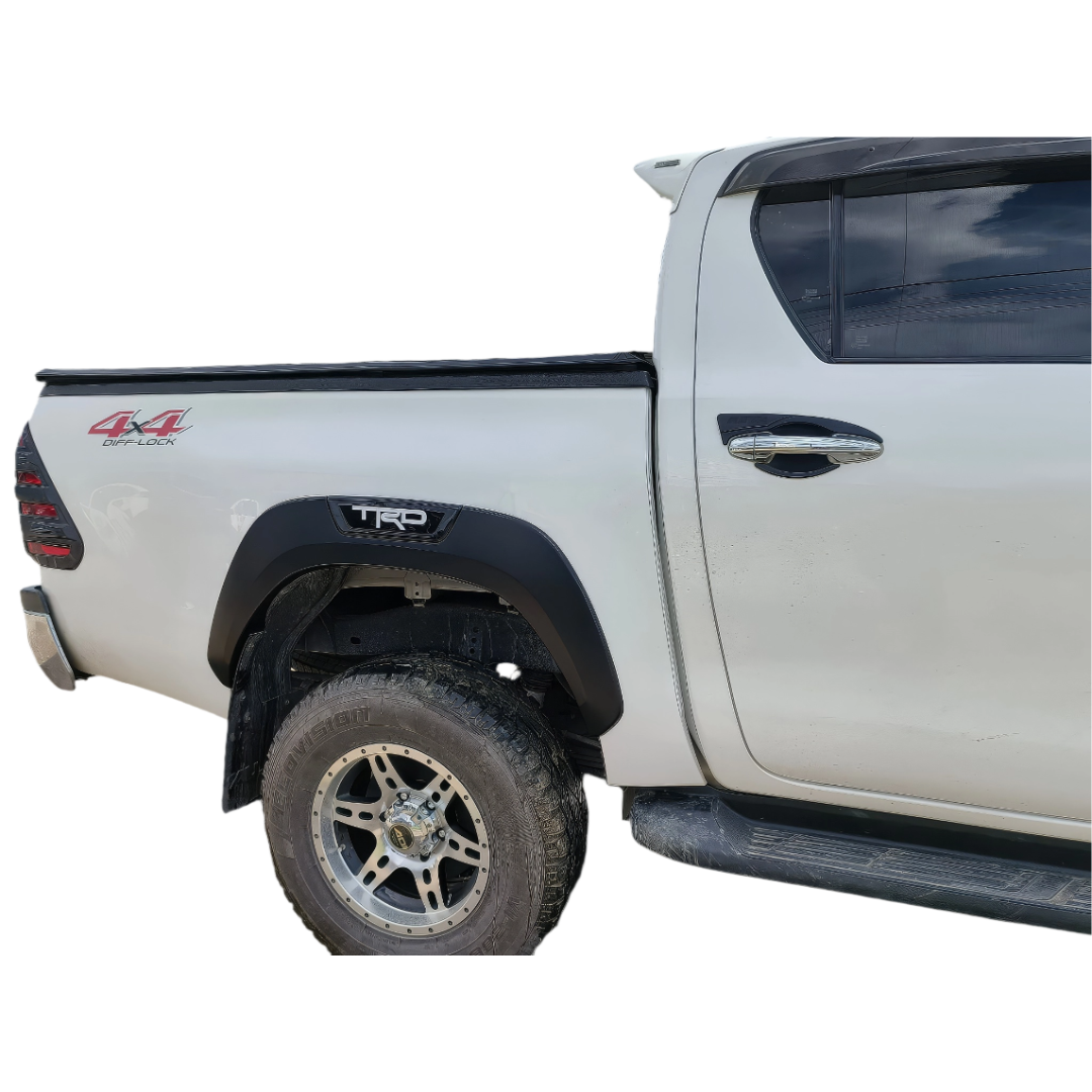 Aναβαθμίστε το Toyota Hilux σας με φρύδια τροχών που προσδίδουν μοντέρνο και δυναμικό χαρακτήρα. Σχεδιασμένα ειδικά για τα μοντέλα 2020+ , με χαρακτηριστικές λεπτομέρειες από ασημί/μαύρη πλάκα και το εμβληματικό λογότυπο TRD.